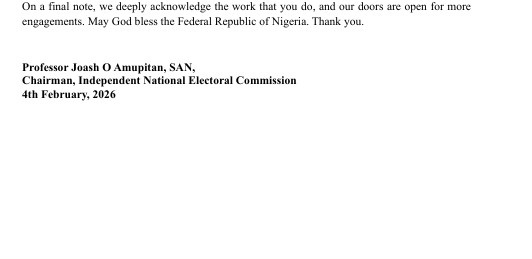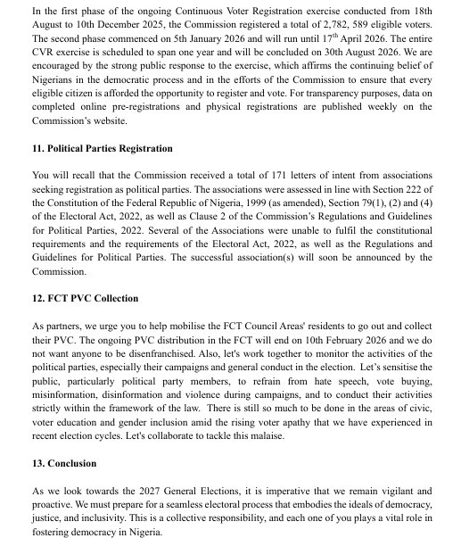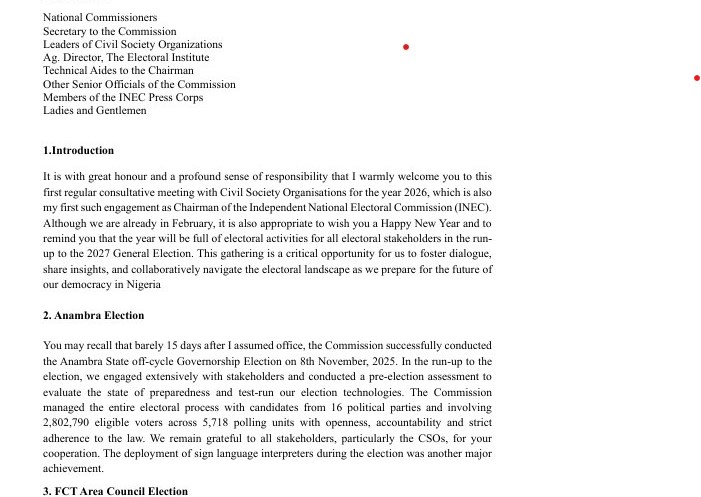 REMARKS BY THE CHAIRMAN, INEC PROF. JOASH AMUPITAN SAN, AT THE FIRST QUATERLY CONSULTATIVE MEETING WITH CIVIL SOCIETY ORGANIZATIONS ON WEDNESDAY, 4TH FEBRUARY, 2026
