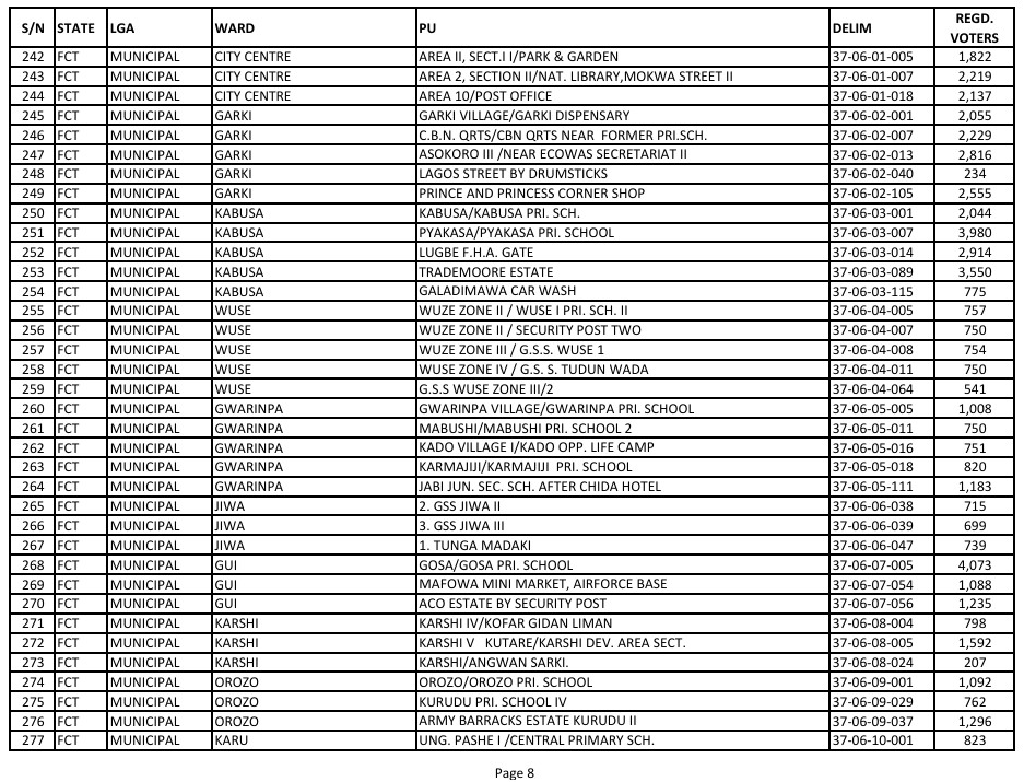 FCT AREA COUNCIL MOCK ELECTIONS HOLDS 7TH FEB, 2026 -DESIGNATED POLLING UNITS FOR THE EXERCISE