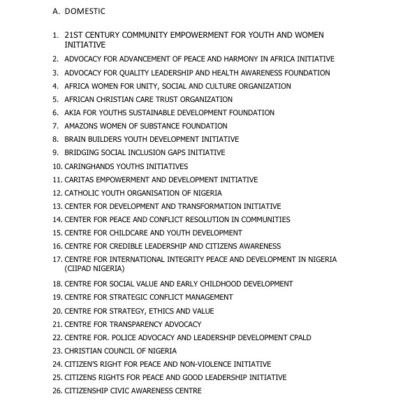 LIST OF ACCREDITED OBSERVERS FOR 2026 FCT AREA COUNCIL ELECTIONS OBSERVER GROUPS