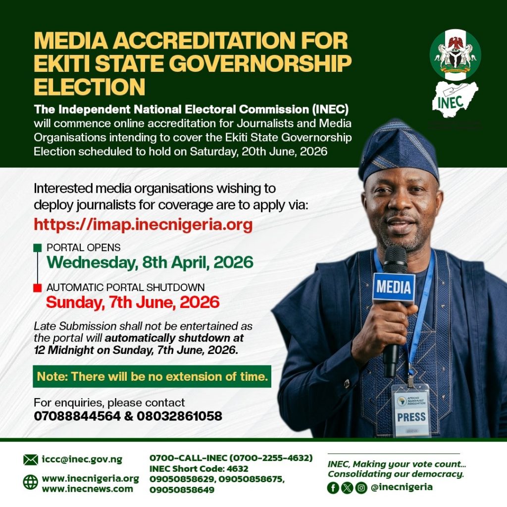 MEDIA ACCREDITATION FOR EKITI STATE GOVERNORSHIP ELECTION